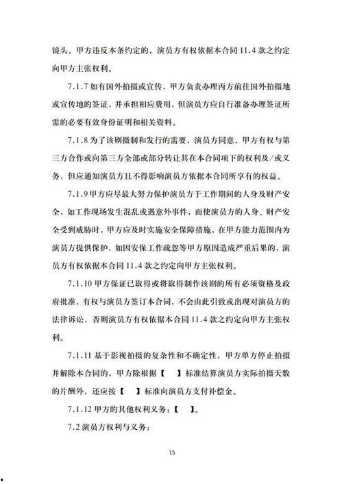 1. 保密条款:这个条款要求演员在合同期间及合同终止后,对项目内容、公司信息等保密。这对于保护公司和项目的利益至关重要。
